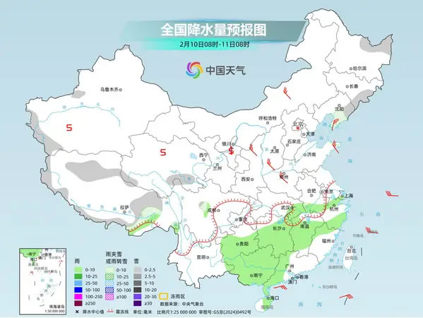 今明兩天(2月9日至10日),南方多地仍有陰雨雪天氣,貴州、湖南等局地或現(xiàn)凍雨。隨著寒潮落幕,今天起中東部更多地方將加入升溫行列,未來(lái)十天氣溫整體將在波動(dòng)中回升,多地累計(jì)升幅可達(dá)10℃以上。春運(yùn)期間,公眾需密切關(guān)注天氣變化,注意雨雪天氣對(duì)交通出行的不利影響。