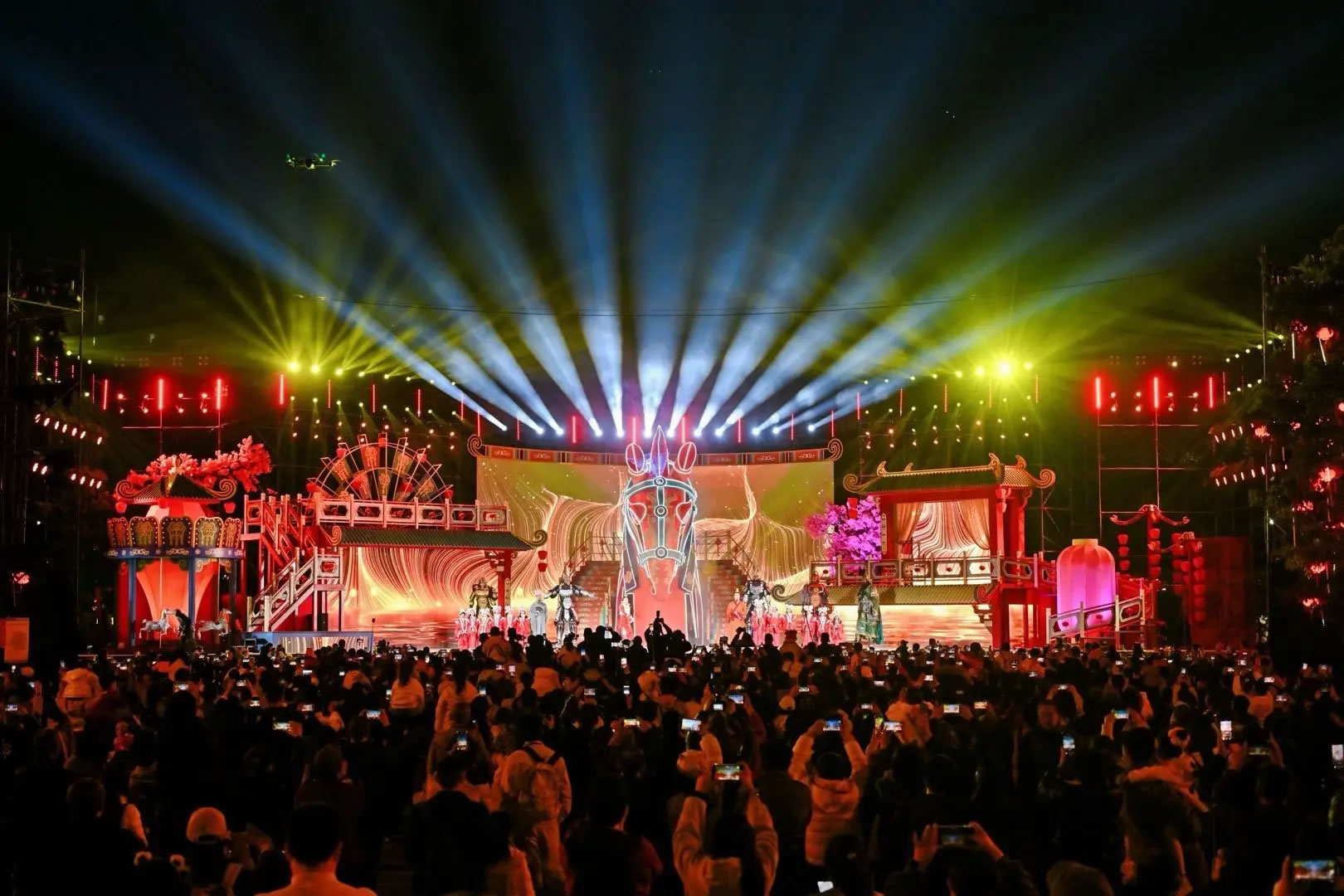 成都市圍繞“九天開出一成都·萬戶千門入畫圖——到成都街頭走一走”核心主題,持續(xù)開展主題活動(dòng)130余場次,共同營造活力滿滿、熱氣騰騰的新春喜慶氛圍。宜賓作為中央廣播電視總臺(tái)2026年春節(jié)聯(lián)歡晚會(huì)四大分會(huì)場之一,合江門廣場、501白酒文化圣地、李莊古鎮(zhèn)等重點(diǎn)景區(qū)景點(diǎn)亮相全國熒幕。達(dá)州市突出科技民俗盛宴點(diǎn)亮除夕夜,渠縣“科技盛景,廟會(huì)新元”國風(fēng)廟會(huì)盛大開幕,融合無人機(jī)光影秀、AI機(jī)器人互動(dòng)秀、直升機(jī)低空巡景與廟會(huì)馬戲團(tuán),打造沉浸式科技民俗體驗(yàn)。南充市閬中古城作為中國春節(jié)文化之鄉(xiāng),創(chuàng)新推出新春大廟會(huì)、五湖四海閬苑過大年、2026閬中春節(jié)聯(lián)歡會(huì)等特色文旅活動(dòng)。