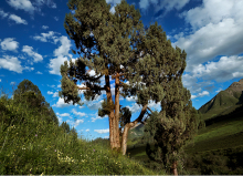 祁連圓柏為常綠喬木。是青藏高原氣候驟變時(shí)期產(chǎn)生的樹種,是名副其實(shí)的常青樹。其葉在幼樹上全為刺形,隨著樹齡的增長(zhǎng)刺形葉逐漸被鱗形葉代替,廣泛分布于海拔2600 -4300米的陽(yáng)坡、半陽(yáng)坡地帶,耐寒旱、耐貧瘠,對(duì)土壤要求不高,能生于酸性、中性及石灰質(zhì)土壤上,其枝葉會(huì)散發(fā)出獨(dú)特的清香,具有清神醒腦的功效。因其根系發(fā)達(dá),有良好的保水固土和涵養(yǎng)水源的作用,固為祁連地區(qū)主要的造林樹種和草原牧護(hù)林。以葉入藥,性苦,有止血、鎮(zhèn)咳功效。