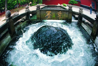 位于公園西南角,泉池圓形,以鵝卵石鋪底,因湖底泉眼如篩子底,密密麻麻而得名。泉水流量0.1立方/秒。泉水汩汩,珠涌浮翠,向北匯入萬(wàn)泉湖。