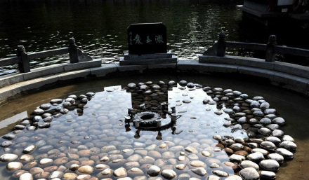位于百脈泉公園清照?qǐng)@內(nèi),泉池圓形,直徑3米,深0.5米,形若圓盤(pán),泉中池底鋪鵝卵石,泉噴水花色白如玉,噴高可達(dá)數(shù)尺,水落池中如玉石片片,碧水洗白玉,浩純無(wú)暇故名白玉泉(漱玉泉),更與墨泉遙相呼應(yīng),一黑一白,一暗一明,共匯繡江。給李清照故里增添了一幅秀麗的畫(huà)卷。仰首西望,易安樓琴聲陣陣,海棠軒茗香輕飄,黃花館書(shū)畫(huà)琳瑯,金石苑古色古香。泉水風(fēng)貌,文化品味融為一體,給清照?qǐng)@增添了耀眼的光彩。