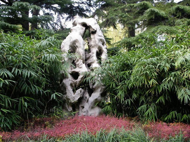 趵突泉原來(lái)還有一座麟石,“七七事變”時(shí)被日本帝國(guó)主義的飛機(jī)炸毀。四座靈石僅存的只有這一龜石。它是一座玲瓏剔透、栩栩如生的太湖石,高近4米,重約8噸。該石挺拔露骨,多空竅,筋絡(luò)明顯,多凹凸,具有太湖石品中的“皺、瘦、透、漏”的特點(diǎn)。