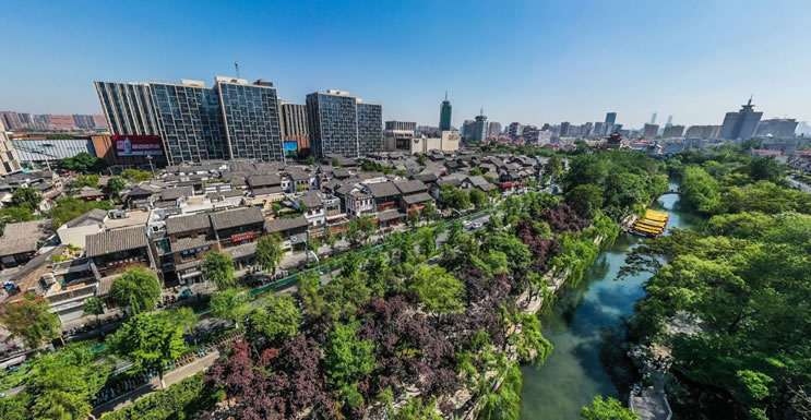 濟(jì)南老城的泉水分布最為密集,十大泉群中,僅有老城就占有4個(gè),基本上是現(xiàn)今游船環(huán)城一圈的區(qū)域:從黑虎泉出發(fā),經(jīng)泉城廣場(chǎng)—西門—五龍?zhí)丁竺骱珗@北側(cè)—老東門—青龍橋,密布著大大小小100多處天然甘泉,匯流成的護(hù)城河流淌到大明湖,與周圍的千佛山、鵲山、華山等構(gòu)成了獨(dú)特的風(fēng)光,也成為少有的集“山、泉、湖、河、城”于一體的城市,自古就有“家家泉水,戶戶垂柳”、“四面荷花三面柳,一城山色半城湖”的美譽(yù)。
