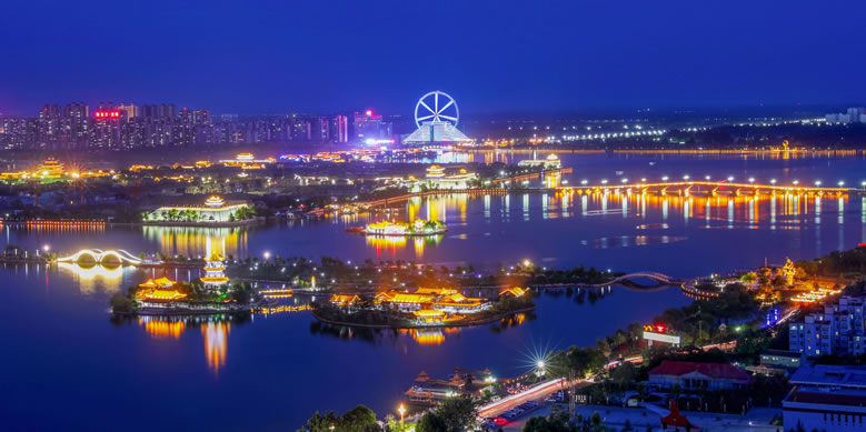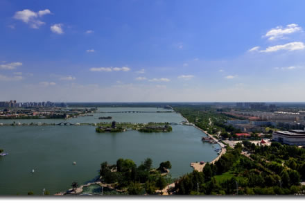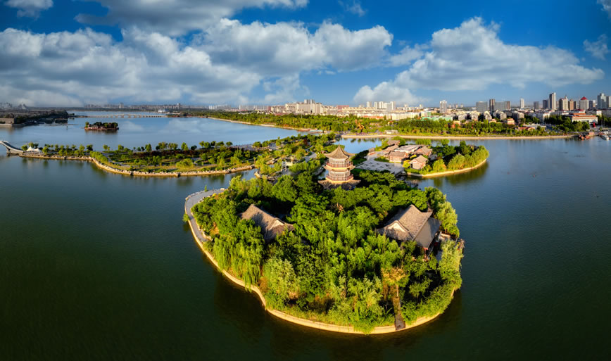 國(guó)家4A級(jí)旅游區(qū)、山東省重點(diǎn)服務(wù)業(yè)園區(qū)、山東省生態(tài)漁業(yè)示范園、國(guó)家垂釣基地,也是“江北水城·運(yùn)河古都——生態(tài)聊城”城市品牌的核心區(qū)域。位于聊城市中心城區(qū),由10個(gè)湖區(qū)和20塊水面組成,總面積6.3平方千米,湖岸線(xiàn)長(zhǎng)達(dá)16千米,有“南有西子,北有東昌”之美譽(yù),是中國(guó)江北地區(qū)罕見(jiàn)的大型城內(nèi)湖泊。東昌湖湖始于北宋熙寧三年(1070年),水深平均達(dá)3米,最深處5米。水質(zhì)清澈,景色宜人,適宜水上游樂(lè)項(xiàng)目的開(kāi)發(fā)與建設(shè)。