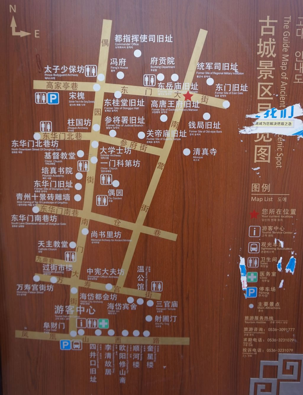 有北門大街、東門大街、偶園街、北營(yíng)街、南營(yíng)街、昭德街等10000多米明清古街道,有青州博物館、三賢祠、李清照紀(jì)念館、萬(wàn)年橋、宋城、偶園、衡王府牌坊、青州府貢院、府衙門、府文廟、真教寺、清真寺、基督教堂、天主教堂、培真書院、南門、魁星樓、歐陽(yáng)修山齋、李清故居等120多處景點(diǎn),還有上百處老字號(hào)等,較為全面地展示了古青州傳統(tǒng)的市井風(fēng)情和社會(huì)習(xí)俗。