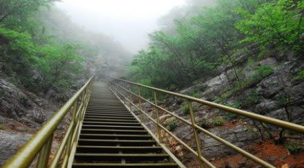 位于旅游南線,從下到上,一共有488級(jí)階梯,上下直線距離近兩百米,是連接南線進(jìn)入景區(qū)絕佳景觀的必經(jīng)之路,直上直下,有“平步青云”的寓意。