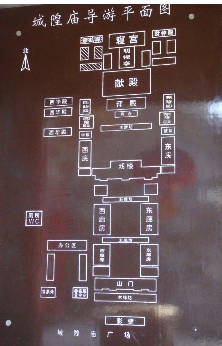 上海城隍廟,位于上海市黃浦區(qū)方浜中路249號(hào),坐北朝向南,內(nèi)部有大門、二門、戲樓、大殿、寢宮、東西廊廡,沿中軸線依次排列,總面積約三千余平方米。廟內(nèi)主體建筑有大殿、元辰殿、父母殿、關(guān)圣殿、文昌殿等9個(gè)殿堂,總面積約三千余平方米。大殿、中殿改為鋼筋混凝土結(jié)構(gòu)。大殿高16米,寬13.7米,進(jìn)深21米。歇山頂,彩椽畫棟,翠瓦朱檐,華麗輝煌。大殿前有照壁、牌坊、戲臺(tái)、碑亭。大殿祀霍光,中殿祀秦裕伯,兩側(cè)花廳奉城隍父母,后殿奉城隍夫人,樓上為寢宮。