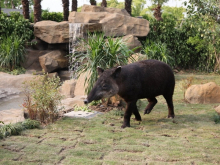 中美貘是生活在中美洲的一種草食動物,它的長相怪異,形體似豬。中美貘棲居于茂密的熱帶雨林中,它們善于游泳和攀登,喜歡在靠近水源、植被豐富的地方生活。中美貘館展區(qū)中配置了假山、瀑布、喬木、灌木、草地等,這種生態(tài)化的展示更加符合中美貘的生活習(xí)性。