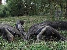 大食蟻獸展區(qū)位于鱷魚島的北面緊鄰飛熊山莊,大食蟻獸是生活在南美洲的一種奇特動物,它們的長相非常獨特,有著尖尖的腦袋和一把“大掃帚”尾巴。大食蟻獸室內(nèi)展廳設(shè)計有地暖和空調(diào),一到冬天就會開啟,將室內(nèi)溫度維持在15攝氏度左右,為保證空氣流通,白天亦會開窗通風(fēng)。其次,在大食蟻獸睡覺區(qū)域鋪墊了木板,能減少熱量流失,它們很喜歡在木板上盤成圈睡覺。冬天的時候,大食蟻獸的食物會提前預(yù)熱下,例如牛奶提前泡暖,酸奶放置到常溫再使用。