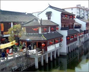 歷史上七寶鎮(zhèn)是個(gè)典型的江南水鄉(xiāng)和重要的農(nóng)村集鎮(zhèn)。鎮(zhèn)中橫亙著自西向東的 蒲匯塘,為太湖水系之一,鎮(zhèn)東有南北向的橫瀝港,北接吳淞江,南接黃浦江。蒲匯塘和橫瀝港相交于鎮(zhèn)中心,境內(nèi)另有支河十余條,當(dāng)年溝通市街的石橋就有27座之多。七寶的鎮(zhèn)市,集中于蒲匯塘南北兩條大街。當(dāng)時(shí)的七寶鎮(zhèn)上,遍布酒館、茶樓、布店、糧行,人氣很旺盛,一直維持著繁榮昌盛的局面。