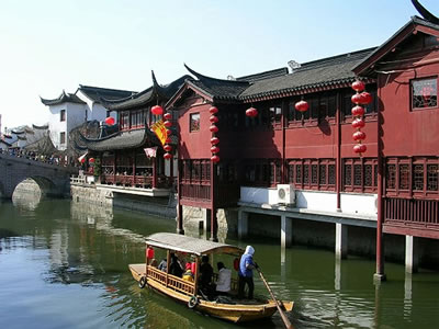 七寶老街改造歷時(shí)兩年多,現(xiàn)已完成一、二期建設(shè)任務(wù)。第一期,修繕蒲匯塘橋和南北一條街,辟建鐘樓和塘橋兩處休閑廣場(chǎng)。第二期,新建蒲匯塘水閣和修復(fù)相應(yīng)的上塘房,重建東西兩座石橋、蒲匯碼頭和七寶校場(chǎng),恢復(fù)典當(dāng)街,建造張充仁紀(jì)念館等。主事者重視古鎮(zhèn)修復(fù)改造中的文化表現(xiàn),在世人面前展現(xiàn)的是一條保留明清建筑特色的商業(yè)文化街,同時(shí)兼有地方文化內(nèi)涵的歷史老街。作為閔行區(qū)唯一還保存著古樸建筑風(fēng)貌的七寶古鎮(zhèn),現(xiàn)在成了游人們?cè)L舊懷古之勝地。不然,享有盛名的七寶老酒去哪里聞?在以餐飲小吃為主的南大街上,返璞歸真的酒坊還在,七寶老酒的生產(chǎn)全過(guò)程一一展示于人。傳統(tǒng)的七寶羊肉,白切、紅燒、熱煲,各種口味應(yīng)有盡有,連外來(lái)的“喬家柵”也看中此間古意而入駐老街。