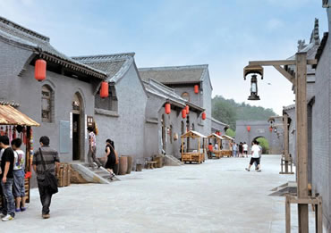 八路村村落建筑總體鳥瞰呈“路”字型,這里高度濃縮八路軍的戰(zhàn)斗精神和光輝業(yè)績,是一個(gè)繼承和發(fā)揚(yáng)八路軍文化,進(jìn)行愛國主義教育及精神文明教育的生動(dòng)課堂,突出八路軍的軍旅生活、文化生活,文藝創(chuàng)作、抗戰(zhàn)宣傳、文化教育,軍工生產(chǎn)、政權(quán)建設(shè)、新聞出版和商貿(mào)服務(wù)等內(nèi)容。