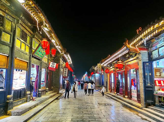 平遙古城位于山西省中部,整個(gè)保護(hù)區(qū)包括“一城兩寺”,即平遙古城以及位于城郊的鎮(zhèn)國(guó)寺和雙林寺。平遙古城城墻以里面積為2.25平方千米,城內(nèi)分布著4條大街、8條小街及72條小巷。
