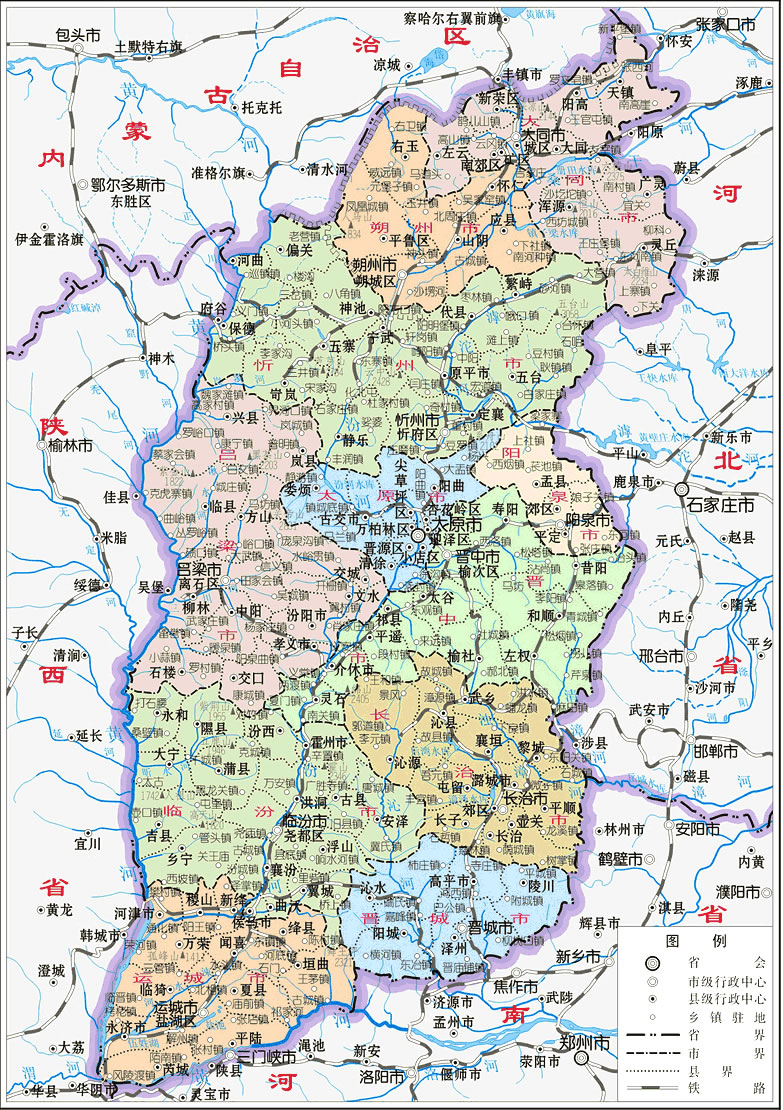 山西地處華北地區(qū)西部,黃土高原東翼,境界輪廓略呈現(xiàn)由東北斜向西南的平行四邊形。東有巍巍太行山作天然屏障,與河北省為鄰,西、南皆以濤濤黃河為塹,與陜西省河南省相望,北跨綿綿內(nèi)長城,與內(nèi)蒙古自治區(qū)毗連。
