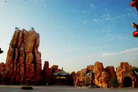 洪崖古洞建在這里與洪洞可是大有淵源的,因為洪洞這個名字就是取自城南“洪崖”與城北“古洞”。“洪崖塹壁”與“古洞連云”這八個大字是由著名書法家董壽平書寫的!昂檠鹿哦础闭嫉孛娣e800平方米,南北長40米,東西寬20米,崖高16米,洞高4米,寬2.5米,洞內(nèi)蜿蜒曲折。