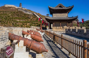 關(guān)城以西的舊關(guān)城俗稱為鐵里門。兩關(guān)之間用石砌長城相連,并建造了敵樓、烽火臺等,形成一組完整的防御體系。在舊關(guān)城附近有一段明代建造的白草口長城,是中國目前保存最完好的長城段之一,該段長城全長5033米,墻高6-8米,底寬5米,頂寬3米。每隔120米左右,便建烽火臺和敵樓各一座,在險要的地段,還設(shè)置了堡寨、壕溝和暗門等。它的東西兩端向北延伸后,最終與外長城相連。