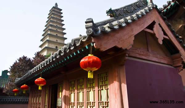 普救寺位于永濟(jì)市蒲州鎮(zhèn)的土崗上,始建于唐武則天時(shí)期,原名永清院,是一座佛教十方院。元代王實(shí)甫《崔鶯鶯待月西廂記》中說的“紅娘月下牽紅線,張生巧會崔鶯鶯”的愛情故事就發(fā)生在普救寺內(nèi)。歷經(jīng)歲月滄桑,寺內(nèi)殿閣僧舍均已毀坍湮沒,唯有13層、高37米的舍利磚塔(俗稱鶯鶯塔)依然屹立于土崗之上。20世紀(jì)80年代中期,依據(jù)唐代佛教寺院的布局和西廂記故事的格局修復(fù)了普救寺,F(xiàn)在巍峨高大的主殿、小巧玲瓏的西廂書齋、方整寬敞的塔院、崔相國夫人和鶯鶯小姐所在的佛居別墅等建筑都已落成,它們依山而筑,錯落有致。