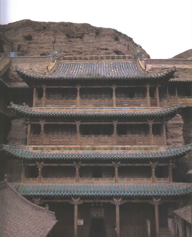 第5窟位于云岡石窟群中部,與第6窟是一組統(tǒng)一設(shè)計、建造的雙窟,屬于云岡中期洞窟?咄飧饔幸蛔屙樦伟四昙由w的四層五間式木構(gòu)閣樓,清代號稱“云岡佛閣”或“石窟摩云”,為云中八景之一。這對豎式設(shè)計的雙子佛閣,既亭亭玉立,又合璧莊重,體現(xiàn)了我們祖先工匠對石窟寺殿宇的精準(zhǔn)理解,也是目前云岡石窟僅存的古代窟檐建筑。它除了具有佛殿功能外,同時還起到遮風(fēng)擋雨作用,特別是保持了窟內(nèi)溫濕度的相對恒定,使得第5、6窟的造像雕刻保存狀態(tài)遠(yuǎn)優(yōu)于其它無窟檐的洞窟。