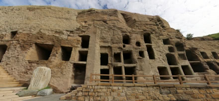 云岡石窟位于中國山西省大同市城西約16公里的武州(周)山南麓、武州川的北岸。石窟依山開鑿,規(guī)模恢弘、氣勢雄渾,東西綿延約1公里,窟區(qū)自東而西依自然山勢分為東、中、西三區(qū),F(xiàn)存主要洞窟45個,附屬洞窟209個,雕刻面積達(dá)18000余平方米。造像最高為17米,最小為2厘米,佛龕約計1100多個,大小造像59000余尊。云岡石窟距今已有1500年的歷史,是佛教藝術(shù)東傳中國后,第一次由一個民族用一個朝代雕作而成皇家風(fēng)范的佛教藝術(shù)寶庫,是公元5世紀(jì)中西文化融合的歷史豐碑。1961年3月被國務(wù)院公布為首批全國重點文物保護(hù)單位;2001年12月被聯(lián)合國教科文組織批準(zhǔn)列入“世界文化遺產(chǎn)”名錄;2007年5月成為國家首批5A級旅游景區(qū)。