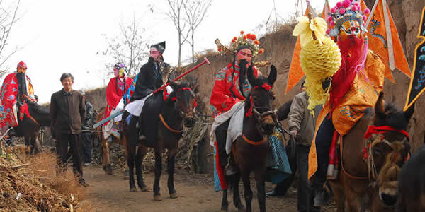 春節(jié),隴縣也叫過年。從臘月初八后,家家開始備辦年貨,準備過年。臘月23日《送灶君》,也稱“送灶”、“掃舍”。臘月30日糊窗戶、貼窗花、年畫,貼對聯(lián)、門箋、門神畫,備酒菜、給祖先獻供饃、菜,燃香、點蠟燭,祭祖祀神,燃放鞭炮,開始過年。晚間全家團聚吃菜喝酒,晚輩給長輩拜年,長輩給小孩、新媳婦散發(fā)壓歲錢,說古道今、談工作、敘家常。午夜后,在院內(nèi)點燃一堆柏葉火,燃放鞭炮,插香接神,除舊歲,迎新春,稱之為“迎喜接福”。正月初一早晨,男女老少穿新衣,給祖先燒香叩頭。早飯吃餃子或臊子面,午飯擺酒席,吃饃食。初二之后,攜帶禮品,走親訪友,謂之“拜年”。此間各村裝扮社火游演,搭制秋千,人們盡情玩樂,享受新年的快樂。