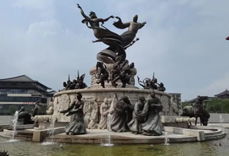 〔舞馬臺〕舞馬之所,舞馬是唐玄宗獨出心裁的大發(fā)明。《明皇雜錄》稱:“玄宗常教舞馬四百蹄,各為左右,分為部目,為某家寵,某家驕。時塞外亦有善馬來貢者,上俾之教司,無不曲盡其妙。因命衣以文繡,絡(luò)以金銀,飾其鬃鬣,間雜珠玉。奏其曲謂‘傾杯樂’者數(shù)十回。其馬奮首鼓尾,縱橫應節(jié)。又施三重板床,乘馬其上,旋轉(zhuǎn)如飛,……每千秋節(jié)(玄宗生日)命舞于勤政樓下。”《津陽門》詩注:“其舞馬,安祿山亦將數(shù)匹以歸而私習之。其后,田承嗣代安有存者,一旦于廄上聞鼓聲,頓挫起舞,廄人惡之,舉篲以擊之,其馬尚為怒未妍妙,因更奮擊,宛轉(zhuǎn)曲盡其態(tài)。廝恐以告,承嗣以為妖,遂戮之,而舞馬自此絕焉!倍鸥Α抖冯u殿》詩“斗雞初賜錦,舞馬既登床”即言此。