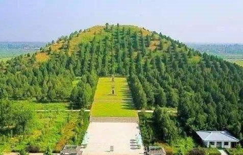 上述與今測(cè)量數(shù)字基本相符?傉嫉孛娣e計(jì)為56878.25平方米,封土體積848592.92立方米。陵園四周呈方形,平頂,上小下大,形如覆斗,顯得莊嚴(yán)穩(wěn)重。