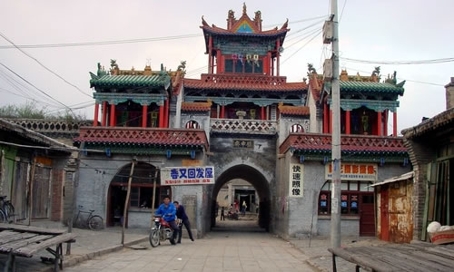高家堡古城:唐屬豐州地,舊稱飛鴉川、彌川。城池始建于明正統(tǒng)四年(1439),原隸屬佳州,清末劃歸神木。該城位于神木縣城西南海50公里的禿尾河?xùn)|岸,西北距明長(zhǎng)城約5公里,原為夯筑土城,萬(wàn)歷三十六年(1608)用磚包砌,清乾隆十五年(1750)、三十三年(1768)兩度重修,后多次修葺。該城平面呈長(zhǎng)方形、東南墻均長(zhǎng)311米,南北墻均431米,殘高6.5—9.1米,基寬7.52米。城墻上部建有1米高的女墻,間有垛口、嘹望洞。北城頭修有三官樓,東南角建有魁星樓,F(xiàn)除魁性樓、女墻、垛口、嘹望洞被壞外,其余的均保存完好。另東、南、西墻各辟一卷門,并筑有甕城,現(xiàn)城門的敵樓、嘹望臺(tái)和南門已破壞。城內(nèi)原有的中興樓(1988年被縣人民政府公布為重點(diǎn)文物保護(hù)單位)、城隍廟、財(cái)神廟、五道廟、祖師廟、西門寺、貞節(jié)牌坊等古建筑,現(xiàn)僅存中興樓和財(cái)神廟,城內(nèi)街道以中興樓為軸心,向東西輻射為東西街,向陽(yáng)北南北輻射為南街和北巷。明、清到民國(guó)初,南街最為繁華,至今大部分鋪面保存完好,東、西、南街各通有巷道。居民建筑群為典型的北方構(gòu)筑風(fēng)格。既有四合院,如北巷的李家大院;又有前庭大院,如東街的盧家大院、西街的韓家大院;還有樓院,如十字巷的李家樓院,同心巷的劉家樓院等。高家堡古城是神木縣乃至整個(gè)陜北較為完整的一座城堡,且有獨(dú)具特色的保護(hù)價(jià)值,神木縣人民政府已擬定將該城列為重點(diǎn)文物保護(hù)單位。