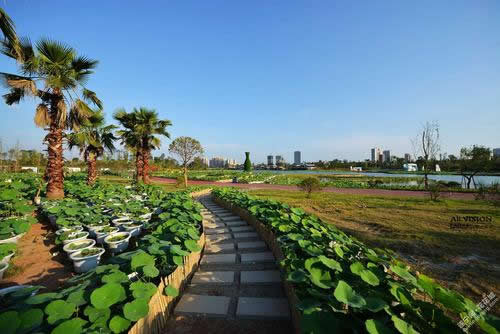 世界荷花博覽園景觀工程項目總投資8.4億元,占地面積為75公頃,其中堤內(nèi)外荷花種植198286㎡;堤內(nèi)外親水棧道6600㎡;堤外生態(tài)護坡12000㎡;堤外景觀工程185800㎡;光彩照明工程544959㎡;碼頭工程5處;環(huán)島堤帶路鋪裝49000㎡;環(huán)島堤帶路綠化8400㎡;上下閘門2座;島內(nèi)園路34000㎡;內(nèi)湖景觀橋2600㎡;景觀綠化376078㎡;古蓮水市工程4000㎡;內(nèi)湖廣場工程19524㎡;主場館工程30665㎡;停車場建設(shè)41032㎡;以及給排水、強弱電工程、島內(nèi)燃氣工程等。建設(shè)期限為18個月。