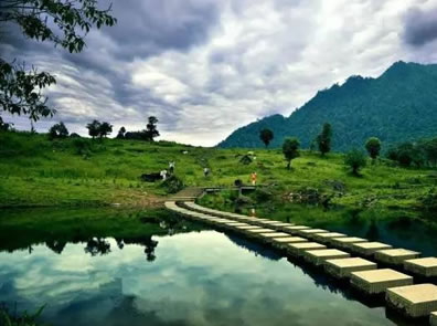 當(dāng)?shù)匾妥逭f, 公母兩個(gè)杜鵑池分居兩地,只能遙遙相望,而不能走近對(duì)方。如果要聽到公、母杜鵑池都發(fā)出嗚嗚的哭聲,那么不管一開始是多么晴好的天氣,就要馬上開始變陰,接著就會(huì)下雨。人們便會(huì)開始猜測,這莫非是一對(duì)被逼分居兩地的情人或者是夫妻所化,心中有無數(shù)懷念之情,冤屈之意無處訴說,便祥托這自然界的風(fēng)和雨?然而,每當(dāng)人們?cè)儐柈?dāng)?shù)厝,問這公、母杜鵑池究竟是怎么回事時(shí),他們便總是搖頭說不知道。是果真不知內(nèi)情,還是畏懼于某種自然的神秘力量而不敢吐露只言片語?我們都無從得知。 |