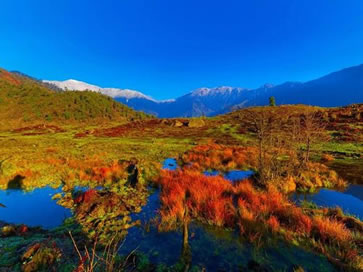 黑竹溝景區(qū)眾山群溝,60%是天然原始森林,25%是灌木叢林,15%屬高山草甸。森林公園內(nèi)自下而上出現(xiàn)常綠闊葉林帶(2000米以下)、針闊混交林帶(2000-2400米)、陰暗針葉林帶(2400-3600米)、高山灌叢的草甸帶(3600米以上)。常見闊葉樹種有大葉楠、香樟、木姜子、石櫟、絲栗、青岡、木荷等;落葉樹種有:槭樹、珙桐、連香、亮葉樺、紅樺、香樺、水青樹、楓楊、花楸等;針葉樹種有:鐵杉、云杉、冷杉、杜鵑花、箭竹等。