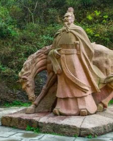 孔明立關(guān)像南,有尊雕塑是蜀漢先主劉備。劉備在成都定都以后,于建安二十二年(217年)設(shè)立了劍閣縣,隸屬于劍門關(guān),加強(qiáng)了對劍閣的防守,以劍閣為中心,將漢中到成都的一千多里連成了一個整體,保證從成都至梓潼,穿劍閣過葭萌、白水,到陜西勉縣陽安關(guān)、漢中這條劍閣道的安全和暢通,為以后諸葛亮出祁山、姜伯約伐中原創(chuàng)造了條件打下了基礎(chǔ)。據(jù)有關(guān)資料記載,劉備在稱帝之前,就四次往來于劍門關(guān),加上《三國演義》第六十五回?cái)⑹龅膭湓谶M(jìn)軍成都擊劉璋途中,又返回葭萌關(guān)看張飛和馬超廝殺,共往返六次之多。