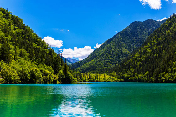 炎炎夏日,似火驕陽與粘濕汗水籠罩了整個大地,而此時的九寨溝卻截然不同。她掩映在整片整片蒼翠欲滴的濃陰之中,茂盛的林木守衛(wèi)著海子,歡快的流水梳理著樹枝與水草,一切都透著清爽。