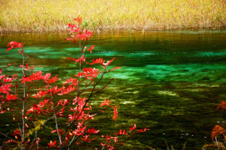 繽紛的落葉在湖光流韻間漂浮,悠遠(yuǎn)的晴空碧凈而湛藍,秋天的九寨溝美得仿佛不真實,無時無刻不在演繹著赤、橙、黃、綠、青、藍、紫的夢幻組合,古人說的“造化鐘神秀”,也就不過如此吧。