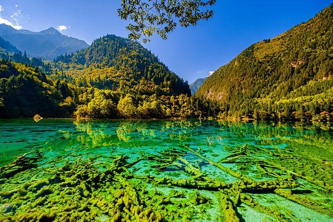 鏡海海拔2367米,長1155米、寬241米、深31米,是九寨溝第三大湖泊,因水面平靜如鏡而得名。