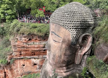 樂(lè)山大佛景區(qū)位于樂(lè)山市郊,岷江、青衣江、大渡河三江匯流處,與樂(lè)山城隔江相望。景區(qū)由凌云山、麻浩巖墓、烏尤山、巨形臥佛等組成。