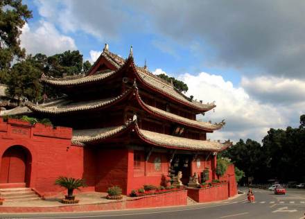 位于梓潼縣城北郊,山勢(shì)雄奇,峰回路轉(zhuǎn),巍巍廟宇,依崖而立,喬木垂蔭,風(fēng)光秀麗,素有“蜀道明珠”之稱。唐代詩人李白《蜀道難》一詩中描述的“五丁開山”的故事就發(fā)生在此。七曲山大廟舊稱“文昌宮”,是“文昌帝君”張亞子的專廟。元代開建,殿宇樓閣共二十三處。結(jié)構(gòu)謹(jǐn)嚴(yán),布局有序,廊腰縵回,曲折自然,雕梁畫棟,莫不精工,為蜀中少有的古建筑群。廟內(nèi)還存有罕見的大鐵鑄造像、鐵鑄花瓶等珍貴文物。明末農(nóng)民起義軍領(lǐng)袖張獻(xiàn)忠曾將大廟認(rèn)作“家廟”。七曲山大廟還以古柏聞名,山中一株“晉柏”虬枝粗干,宛若蒼龍騰空,有“樹王”之稱,為古“翠云廊”之奇觀。