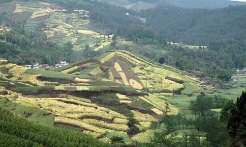 自然地理 含增鎮(zhèn)屬丘陵、高山相間地形; 盤江(通口河)東岸的吳家后山、乾元山為大山地帶,東南麓為丘陵。最高海拔為2106米,最低海拔540米,地型起伏變化大,地貌大多為喀什特,基巖溶洞陡坎多,巖石裸露地面多, 地質(zhì)多為石灰石風(fēng)化層,境內(nèi)年降雨量700--1200毫米左右,氣溫較低,年平均氣溫15℃,平均日照900時左右,林木生長茂密,屬國家天然林天保護區(qū)。2000年底,該鎮(zhèn)有耕地面積6214.8畝, 其中田1791畝,地4423.8畝,天然林保護面積73130畝,森林覆蓋率55%,糧食作物主要以玉米、水稻、小麥為主, 油料作物以油菜、花生為主,經(jīng)濟作物主要有生姜、大蒜、海椒、薇菜等。養(yǎng)殖業(yè)以養(yǎng)豬、羊、牛為主,小家禽有雞、鴨、鵝、兔等。 自然條件 “四面青山環(huán)繞,生態(tài)純美;冬無嚴(yán)寒夏無酷暑是天然養(yǎng)生地”凡到過江油含增鎮(zhèn)的人,都會這么評價山城含增。這里清新宜人的環(huán)境的確令人稱道,尤以綠色植物景觀墻吸引人。這些數(shù)量眾多、規(guī)模宏大的景觀墻,如一道道綠色屏風(fēng),把含增裝扮得清幽無比。1950年代前,含增鎮(zhèn)跟江油其它鄉(xiāng)鎮(zhèn)一樣,并不為外界所知。國家實施“三線建設(shè)”后,長城特殊鋼公司三分廠落戶這里,含增便熱鬧起來,也現(xiàn)代起來,進而成為一座小城。與其它地方的“三線建設(shè)”不一樣的是,這里的職工生活區(qū)與廠區(qū)因大山的阻隔,相距較遠(yuǎn),沒有連在一起。含增便跟噪音、粉塵和一些有害化學(xué)物質(zhì)絕了緣,保持了清新、恬淡、自然的個性。過去,含增在城鎮(zhèn)建設(shè)上不太注重環(huán)境綠化,直到1980年代后,才有了明顯改觀。據(jù)三分廠含增街道辦主任張善進介紹,這是由于生活垃圾沒有及時處理,造成了環(huán)境污染所致。在環(huán)境美化上,含增人是動了腦筋的。由于含增地處山區(qū),對環(huán)境的整治便不能按常規(guī)思維進行,他們采取依山就勢、見縫插綠、因墻添綠的方式全面推進。在盤江賓館的街對面,有一道高5米、長50米的景觀墻。山坡上修建的是供應(yīng)全鎮(zhèn)一萬多人使用的自來水塔。為了綠化美化這塊巨大墻體,精明的含增人在墻的頂部栽種了迎春花和常春藤。一年四季,季季景色各不相同。早春,迎春怒放,黃花朵朵,向人們傳遞著春的氣息;夏天,常春藤碧綠如洗,枝蔓從墻頭攀爬下來,恰似一道綠色瀑布從天而降;秋冬季節(jié),藤葉紅黃相間,猶如一幅五彩繽紛的國畫。迎賓路旁,有長百米的建筑填方地段。含增人匠心獨運,設(shè)計了兩層仿古觀景臺,路邊建起了仿古的樓臺亭閣,供人們休閑娛樂。整個建筑全用植物造景,給人以步移景換的感覺。樓臺邊有古樹環(huán)繞,亭子上有紫藤攀爬,水榭邊有杜鵑依偎,而兩層觀景臺前,種有碧綠的倒槐和塔柏;后墻上,攀爬能力極強的爬山虎正極力擴張地盤。從遠(yuǎn)處看,兩道后墻如兩塊綠色掛毯貼在墻上。含增街道辦后的山坡上,建設(shè)者還巧妙地利用盤江盛產(chǎn)的丹景石造景,上刻李白的《訪戴天山道士不遇》等詩篇,四周栽上月季、黃楊等綠色植物,一股清新的文化氣息撲面而來。在含增,很難發(fā)現(xiàn)兩塊形狀相似、栽種植物一致的綠色墻體。這又是含增人的精明之處,他們除用藤本植物和灌木作為遮掩墻體的綠色植物外,還廣泛利用喬木巨大的遮陰功能,掩飾墻體。從生活區(qū)通往廠區(qū)的盤江路兩邊,茂盛、壯實的夾竹桃形成了一條綠色通道。白的、粉紅的花朵迎風(fēng)招展,有如成群的處子在舞蹈。在迎春路邊,成排的法國冬青枝繁葉茂,連綿不絕,恰好擋住了裸露的山巖。“經(jīng)過20多年不懈努力,綠色意識早已深入含增人的心里。”張善進自豪地說。 經(jīng)濟發(fā)展 含增鎮(zhèn)工業(yè)經(jīng)濟發(fā)展條件優(yōu)越,態(tài)勢良好。 2004年,全鎮(zhèn)國民生產(chǎn)總值2 100萬元,其中鄉(xiāng)鎮(zhèn)企業(yè)總值 17589萬元,工業(yè)總產(chǎn)值12680萬元,財政收入230萬元,農(nóng)民人均純收入3255元,完成招商引資1115萬元。由香港瑞然集團天安石材公司對石灰石礦進行開采深加工,制成裝飾墻體磚、地板磚遠(yuǎn)銷日本、美國。 含增鎮(zhèn)旅游資源十分豐富,鎮(zhèn)政府確立了將旅游業(yè)作為支柱產(chǎn)業(yè)的發(fā)展戰(zhàn)略,積極為旅游企業(yè)創(chuàng)造良好的經(jīng)營空間,特別是全力支持白龍宮、香水湖、天音巖重點景區(qū)開發(fā)和建設(shè),大力促進省級風(fēng)景名勝區(qū)乾元山道路的改造和接待能力的提高。加強旅游市場管理,提高服務(wù)質(zhì)量,樹立良好的對外形象鎮(zhèn)政府還積極發(fā)展交通運輸、餐飲、娛樂等行業(yè),促進第三產(chǎn)業(yè)發(fā)展。 含增鎮(zhèn)農(nóng)業(yè)發(fā)展立足山區(qū)資源優(yōu)勢,大力發(fā)展無公害農(nóng)產(chǎn)品、藥材、山野菜、反季節(jié)蔬菜,農(nóng)業(yè)產(chǎn)業(yè)化主要依托朝匯農(nóng)業(yè)科技公司和蒼林藥材公司,帶動農(nóng)戶發(fā)展紅豆杉和天麻等藥材的種植,養(yǎng)豬協(xié)會帶動農(nóng)戶發(fā)展仔豬外銷工程 發(fā)展簡況 為認(rèn)真學(xué)習(xí)貫徹2008年11月9日江油市委召開的中心組學(xué)習(xí)會議精神,2008年11月13日上午含增鎮(zhèn)召開了鎮(zhèn)村干部會議,鎮(zhèn)黨委書記劉強全面?zhèn)鬟_了