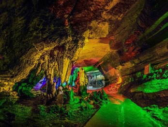 可謂山山有洞,洞中有洞,洞洞毗鄰,各具特色。洞內可游面積在2萬平方米以上的溶洞有:牛角嵌、獅子洞、中峰洞、宋家洞、樓房洞、老龍洞、仙人洞、仙女洞等40余個。這些溶洞,或臨清溪,或處絕壁,有的須匍匐而進,有的要潛水而入,洞中景觀都保持著原始風貌。其中已開發(fā)的中峰洞、獅子洞、宋家洞、樓房洞等景觀奇特,獨樹一幟。三潮水、變色泉、風泉、跳魚泉等異彩紛呈,蔚為壯觀。景區(qū)最大的溶洞中峰洞又名佛光洞,因洞內顯影佛光而得名。它集雄偉、險峻、奇麗、神秘于一體。分上洞、中洞、下洞三層;大洞、中洞、小洞三種;旱洞、水洞、風洞三類;共由上、中、下、水、峽五部分構成;是一座多層次、多類型、多特色的地下溶洞世界。全長1.5萬余米,面積60萬平方米,已開發(fā)7000米,可游面積20萬平方米。洞內阡陌縱橫,狀如蛛網,峽谷深淵,氣勢磅礴,乳筍林立,石芽參差。該洞有三個出口,洞道空間大,冬暖夏涼,氣候宜人,洞內溫度、濕度、空氣皆優(yōu)。歷年溫度恒定在18℃,濕度為96%至98%,在國內外溶洞中絕無僅有洞內有仙風神韻的瑤池仙境,奇幻異象的巴人風情,仰天長嘆的霸王別姬,參憚悟道的萬佛朝圣,天造地設的巴國遺風,紫微高照的佛光普照,水光山色的天河放舟,歲月鐫刻的滄海桑田,是一座地下奇城。