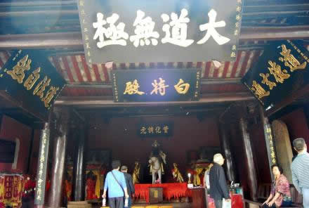 風(fēng)洞樓下是白特殿。“特”是比馬還能跑的動(dòng)物,它馬頭、驢身、騾尾、牛蹄,俗稱“四不像”,古人說“千里馬、萬里特”。傳說文昌帝君的坐騎就是全身色白的特,即“白特”,明代著名小說家馮夢龍?jiān)珜憣β?lián):“梓潼帝君乘白特下臨凡界,三清老子騎青牛西出函關(guān)”。這座殿堂就因白特而得名。