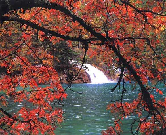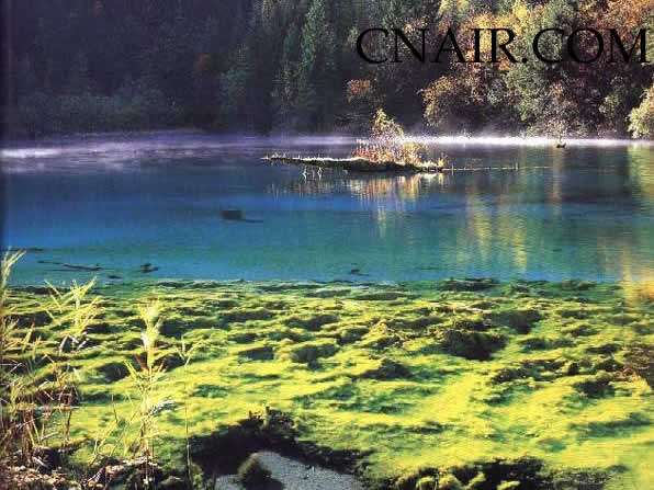 九寨溝內,清清碧水倒映藍天,魚翔蒼穹,鷹擊水底,呈現(xiàn)出謎一樣的童話世界。