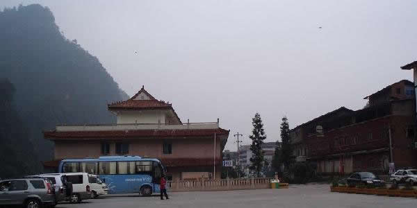 紅佛寺所在羅家?guī)r鏡子坎形成的山勢(shì)被古人喻為:“蝙蝠雙翼”又形如一把護(hù)手椅。據(jù)資料記載,在這一帶過去滿山蒼松翠杉;古柏參天;藤纏蔓繞;郁郁蔥蔥;簧竹掩影;小徑通幽;山上霧靄繚繞;山澗流水潺潺。翻天坎,過平橋,溯明湖和如鏡的天堂河而上有“流杯回觴”的妙景。沿小溪傍石階慢步登高,一路上有眠云石,觀音崖等自然景觀,到此半山,紅佛寺靜臥林中,崖壁間,人們常說的“眠龍臥蛟”的大小龍洞流溢出潺潺清涼,仰眺云端,鐘秀峰宛如一口大鐘聳峙在群峰之中,屹立在鐘秀峰的南照塔也隱現(xiàn)在山頂蒼翠之中。