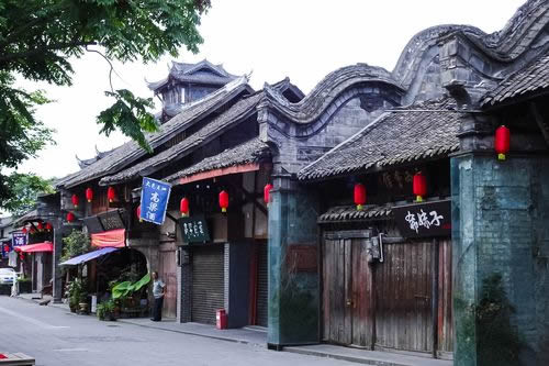 在不趕集的日子里,街上很安靜,走在石板路上能清晰的聽到自己的腳步聲。從麒麟街上的黃氏和羅氏故居能依稀看到元通曾經(jīng)的華麗,臨河小巷口的哥特式建筑展示著小鎮(zhèn)曾經(jīng)的華麗。 在崇州有個(gè)古鎮(zhèn)——它不張揚(yáng),但處處透著掩飾不住的貴氣;它不出名,可走近后卻發(fā)現(xiàn),它的內(nèi)涵已超過許多已出名的古鎮(zhèn)。它位于成都——崇州——都江堰的旅游通道上,人們?nèi)ソ肿、文錦江、雞冠山、九龍溝……旅游點(diǎn),一般匆匆而去,很少走進(jìn)它,它就是在清代就有“小成都”之稱的元通古鎮(zhèn)。這是個(gè)離成都市區(qū)很近的古鎮(zhèn)。