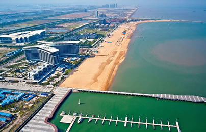 東疆港人工沙灘(東疆灣金沙灘)—天津?yàn)I海新區(qū)首個(gè)人工海灘已經(jīng)建成,藍(lán)色的海水,金色的沙灘,或坐在松軟沙灘上吹海風(fēng),或光著腳丫在鵝卵石帶上散步,撿貝殼、吃燒烤、玩沙灘排球……您用不著走出天津,就能享受“碧海金沙”帶來的樂趣。東疆港人工沙灘所處的位置是天津海岸線最靠近外海,也是水質(zhì)最好的地方。東疆港人工沙灘的“金沙”平均厚度達(dá)1.2米,從岸邊呈緩坡狀一直延伸至海邊。人工沙灘所用的“金沙”全部從福建運(yùn)來,用量近20萬噸。沙灘的緩坡設(shè)計(jì)充分考慮到潮水漲落時(shí)的水流情況,可防止海水退潮時(shí)將“金沙”帶走。為保證游人安全,在公共游樂區(qū)沙灘的近海端鋪設(shè)了一條寬約58米的鵝卵石帶,所用鵝卵石將從秦皇島運(yùn)來。此外,天津港還在附近海域修建防波堤,以保持海灘的潔凈,防止海上漂浮物進(jìn)入人工海灘。