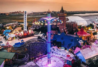 天津歡樂谷主題公園占地面積35萬平方米,坐落于天津東麗湖畔。全園分為六大主題區(qū):演藝中心、歡樂時光、海洋之心、維京海港、圣誕村、飛躍加勒比。全園擁有56項(xiàng)水陸兩棲、老少皆宜的游樂設(shè)施,每日近90場藝術(shù)盛宴,以多元?dú)g樂塑造一座全年歡樂之都、一個充滿激情與浪漫的繁華都市開心地。