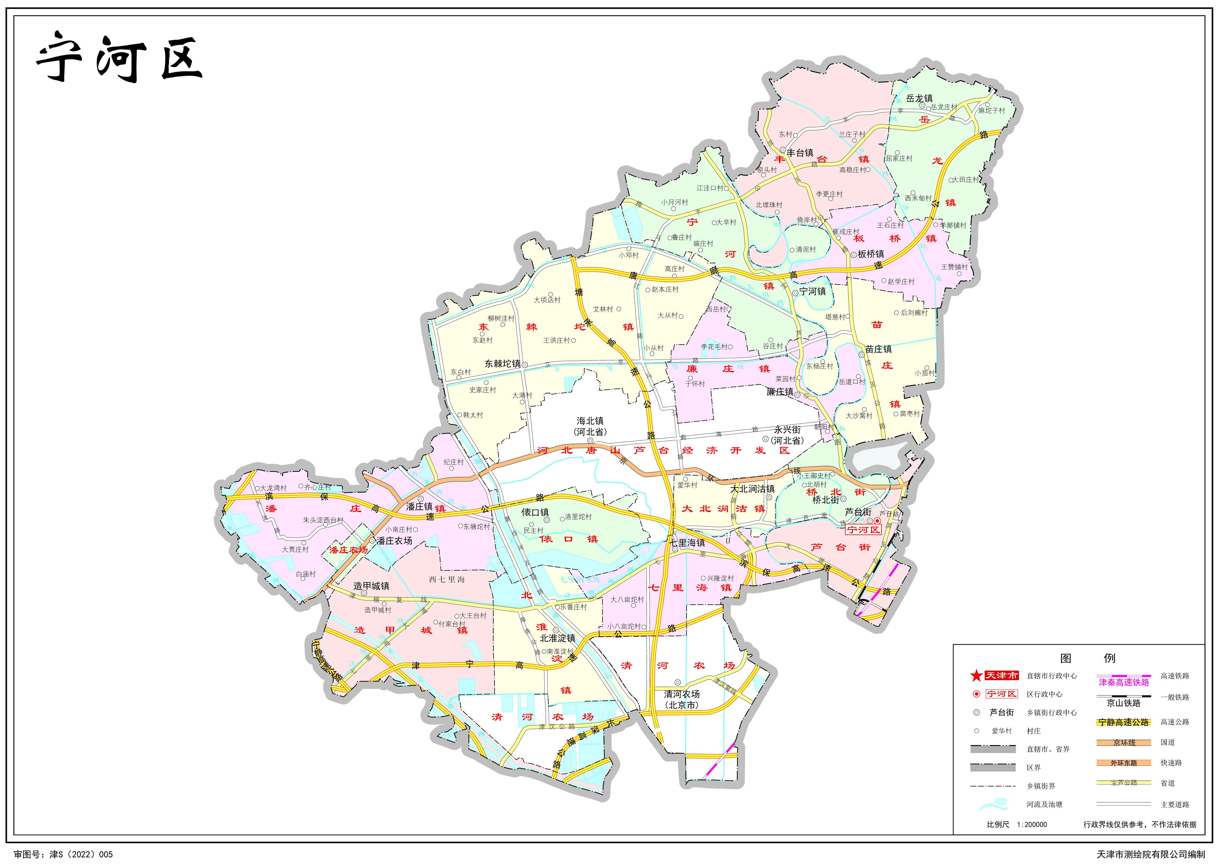 寧河區(qū)轄2個(gè)街道、13個(gè)鎮(zhèn):