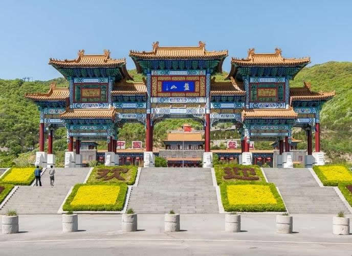 盤山萬佛寺原名“石佛殿”,位于盤山南坡、石趣園西門。由照壁、天王殿、鐵鐘、大雄寶殿等四大部分組成。盤山萬佛寺萬佛殿,殿內(nèi)供奉有中國最大的三圣佛石雕,塑有10960尊佛像。1993年,韓振帶領(lǐng)玉石莊人依托豐厚的文化底蘊,將石佛殿重建于原址西1公里處,并更名為“萬佛寺”。它背依陡峰,下臨危崖,是京東、津北惟一的佛、法、僧三士俱全的佛門圣地,數(shù)十里外即清晰可見!叭f佛寺”三字為原全國政協(xié)副主席、全國佛教協(xié)會會長趙樸初所題。