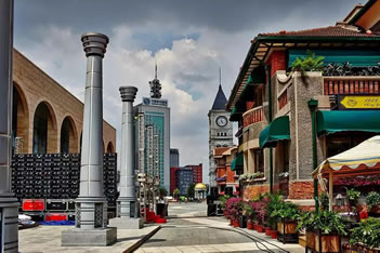意式風(fēng)情區(qū)以馬可?波羅廣場為中心,即民族路和自由道交會(huì)處,涵蓋哥特、羅馬、巴洛克等建筑特色,具有珍貴的歷史、文化、藝術(shù)價(jià)值。廣場周圍建筑錯(cuò)落有致,雕飾精美,構(gòu)成了風(fēng)格典雅的建筑群。和平女神雕塑位于廣場中心,為意大利人設(shè)計(jì)和建造。