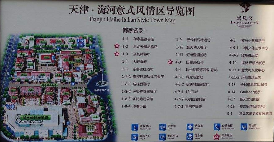 天津意式風(fēng)情區(qū)坐落于海河之濱,地處天津市河北區(qū),是由五經(jīng)路、博愛道、勝利路、建國道合圍而成的四方形地區(qū),占地28.45公頃,原為意大利租借地,幾乎包含了意大利各個(gè)時(shí)期不同風(fēng)格的建筑,現(xiàn)存各類風(fēng)貌建筑將近200棟,開發(fā)的有76棟,建筑面積達(dá)6萬平方米,是近代意大利在國外保留最為完整的歷史街區(qū)。
