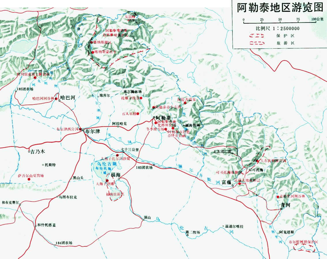 阿勒泰地區(qū)轄1個(gè)縣級(jí)市,6個(gè)縣: