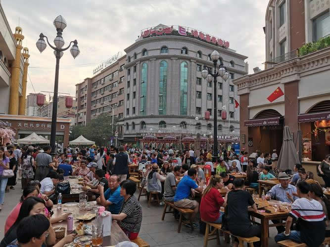 新疆國際大巴扎大型宴會廳是新疆最大的具備大型歌舞表演并同時(shí)可容納1000人用餐、以新疆民族歌舞、文化、飲食結(jié)為—體的大型歌舞宴會廳。飲食改變了傳統(tǒng)的圍餐制而采用了歐美西方的分餐形式,以新疆民間歌舞表演為主導(dǎo)飲食的觀賞性餐飲廣場。